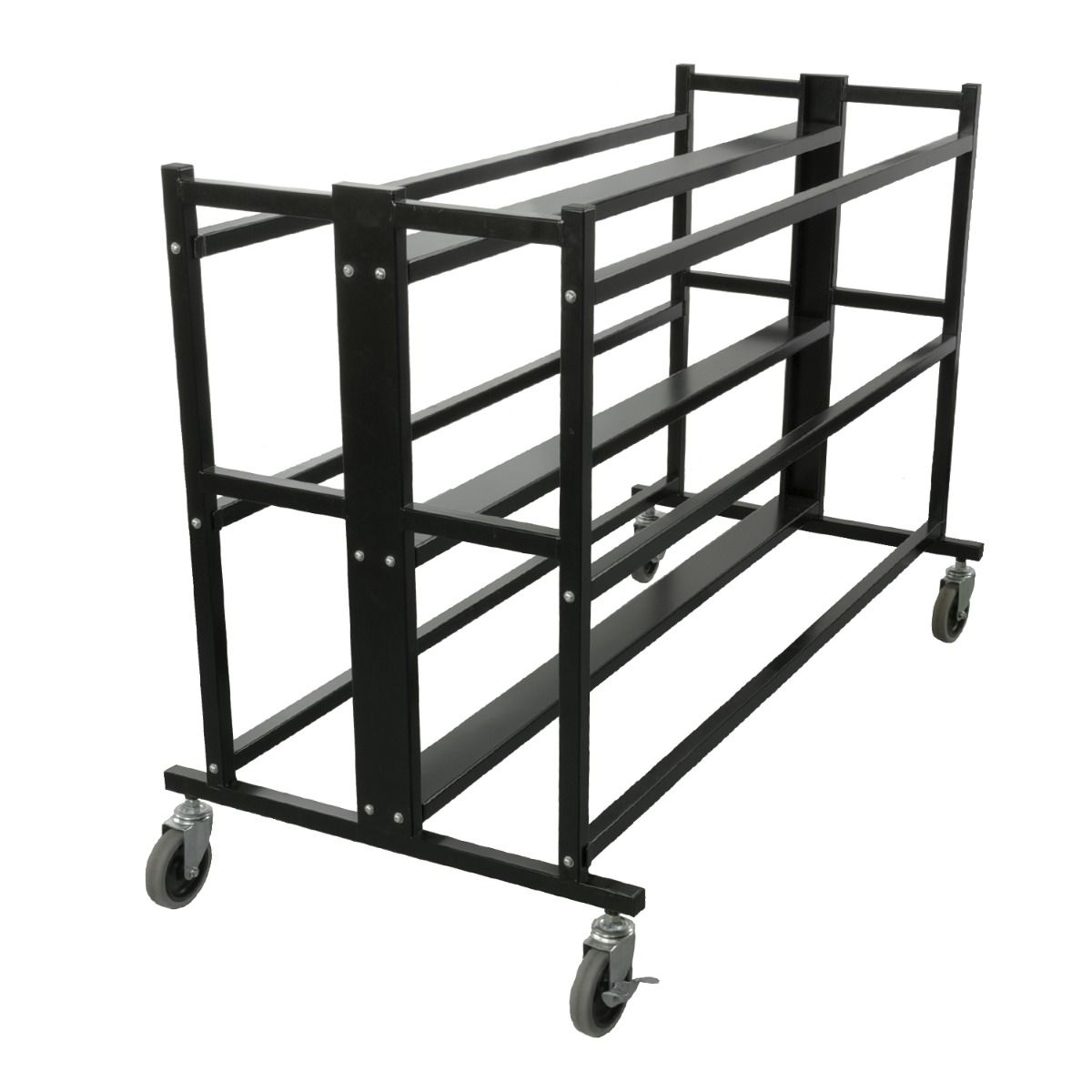 - 1″ steel construction with black powdercoat finish and easy roll casters