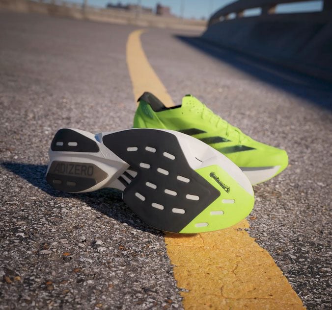 The Adizero Adios Pro 3 is the pinnacle of Adizero Racing products. It was built with and for athletes to achieve unbelievable feats. These adidas running shoes are made to optimize running efficiency. Our carbon-infused ENERGYRODS 2.0 provide lightweight stiffness for a snappy, efficient stride. Ultralight LIGHTSTRIKE PRO cushions every step with two layers of our most resilient foam to help you maintain energy over the long term. It all rides on a thin layer of textile rubber outsole for extraordinary traction in wet and dry conditions.