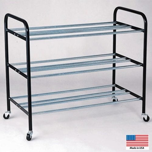 Strong and durable ball cart! 1? x 16 gauge round tubing. Crosstubes are also zinc plated. 3? heavy duty swivel casters. Powder coated ends. Some assembly required.
