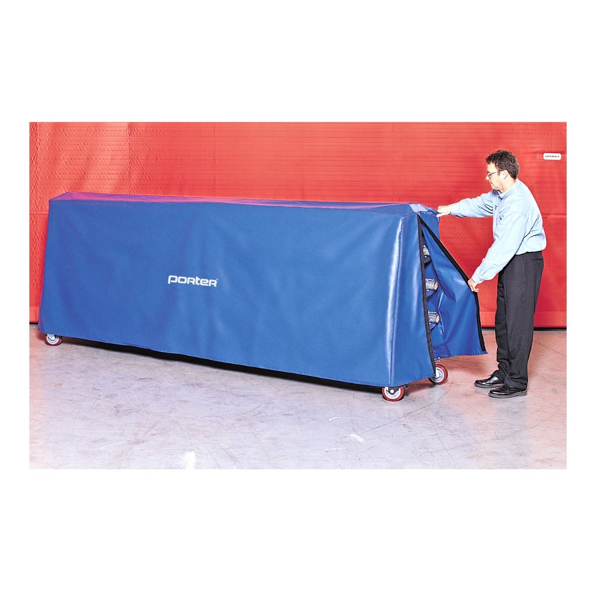 Protective dust cover for floor cover storage cart.