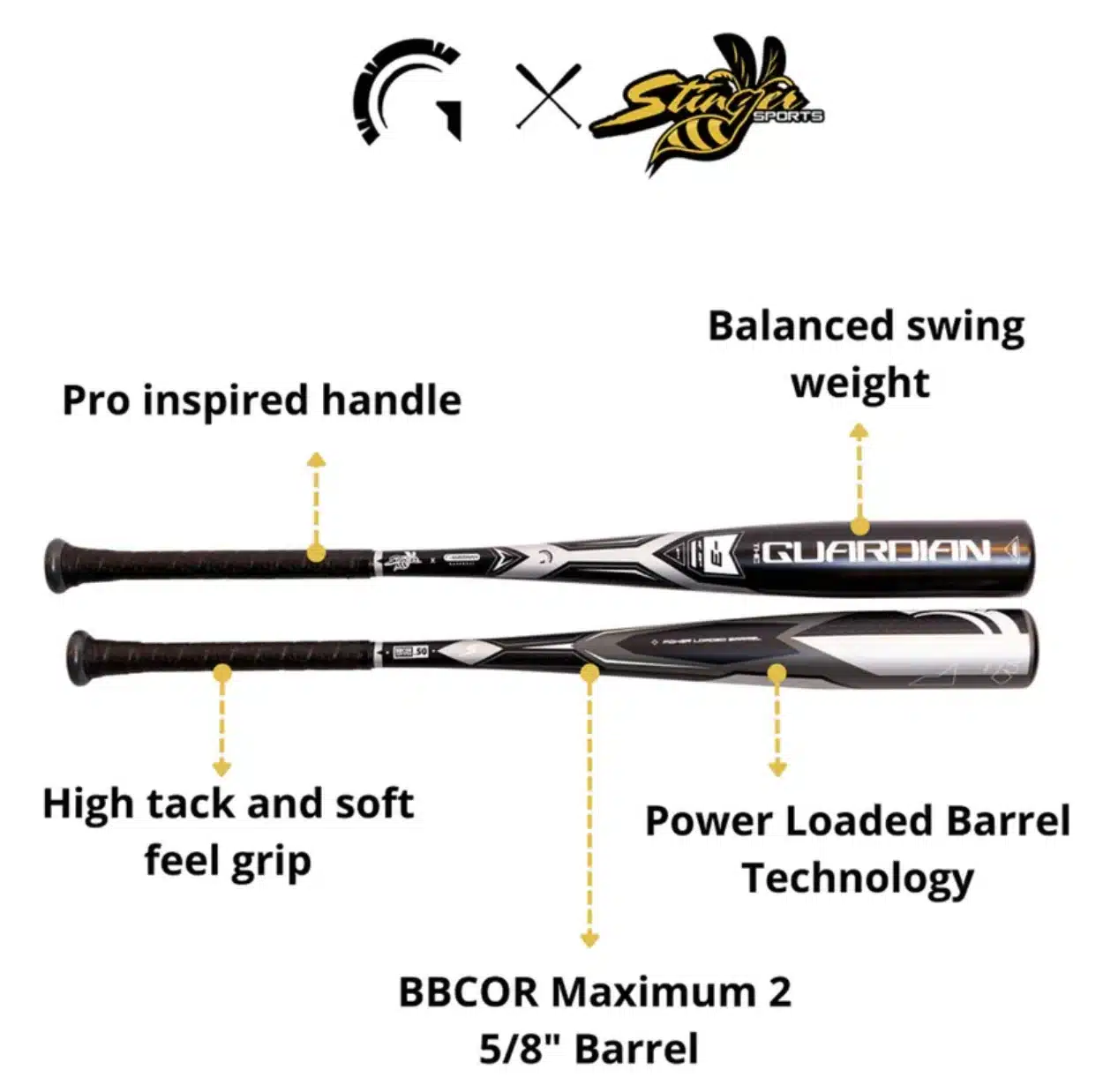 The Guardian was crafted to be directly in between the endloaded NUKE and ultra balanced Missile in terms of swing weight. Featuring our Power Balanced Barrel Technology to optimize exit velocity and pop right out of the box, no break-in needed! The Guardian offers all the power of the popular Stinger NUKE, but with a more balanced swing weight. The perfect choice for well-rounded hitters just entering into the BBCOR world, or more experienced players that prefer less end-load, but don’t prefer the ultra-light feel of the Missile.