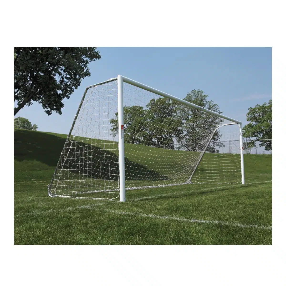 Portable goals made of 4″ round aluminum posts with a white powder coated finish. Equipped with European backstays. Goals meet NFHS, NCAA and FIFA requirements.