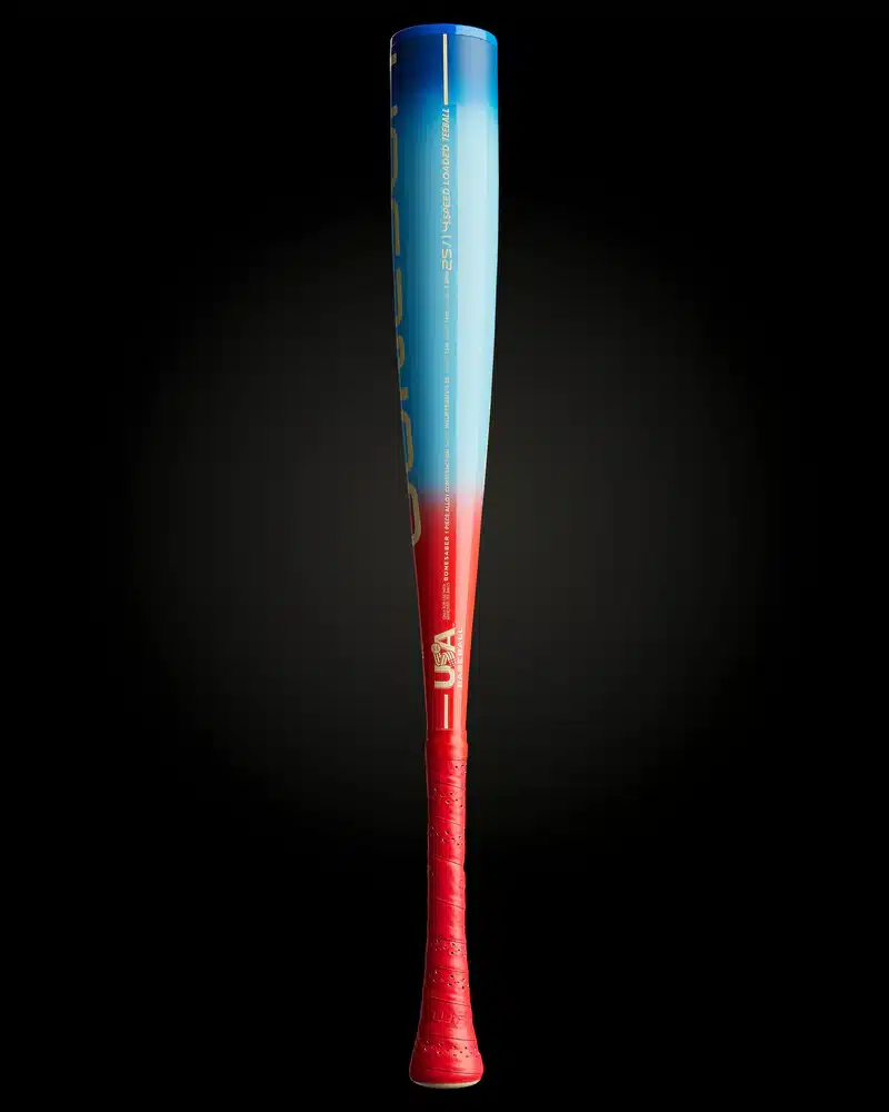 Featuring a brand new fade design in ‘Hero” with a red-to-powder blue-to-navy fade and red grip, the 2026 Bonesaber USA Hero Metal Teeball Bat -11 brings the same trusted Bonesaber performance in a bold new look. Built for little warriors ready to attack the ball, this model keeps the proven technology hitters count on while showing off a fresh visual identity.